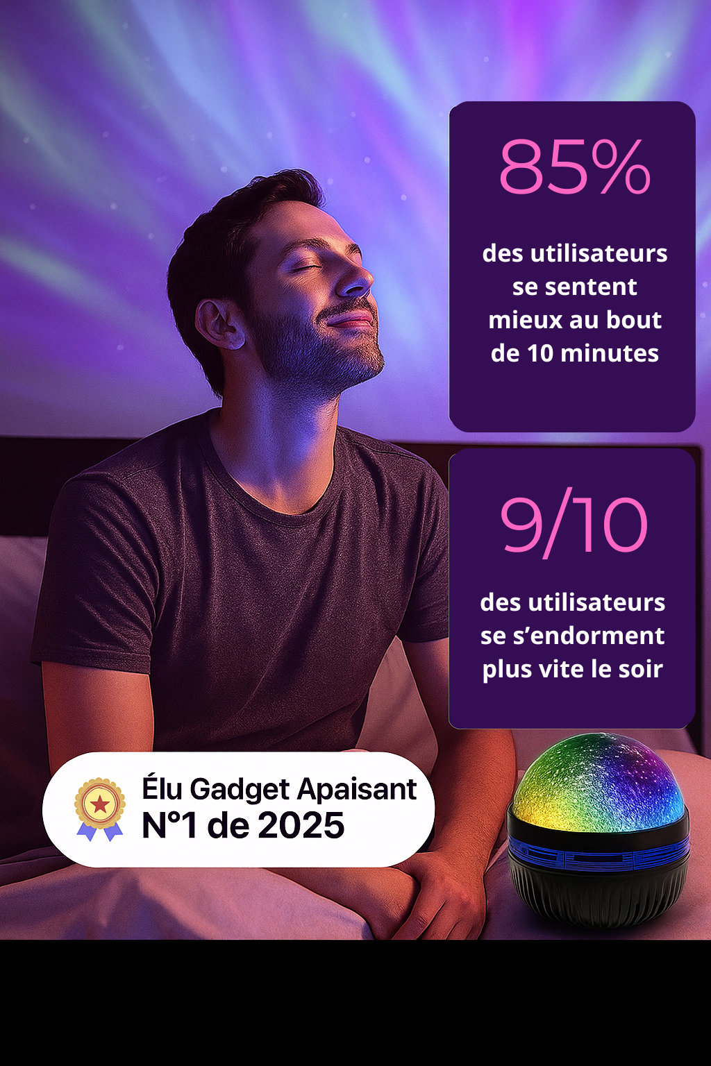 Son Projecteur d’Aurore diffuse des vagues de lumière inspirées des aurores boréales, alliant design élégant et innovation sensorielle.